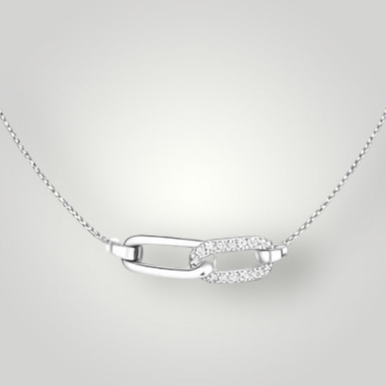 Featuring two elongated links — one polished and one pavé-set with crystal stones.