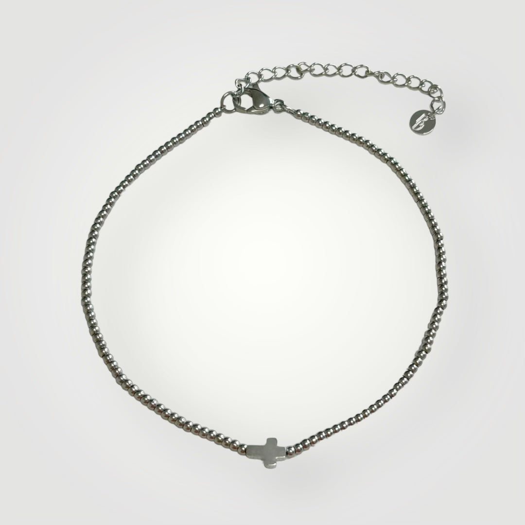 Beaded Silver Anklet with cross